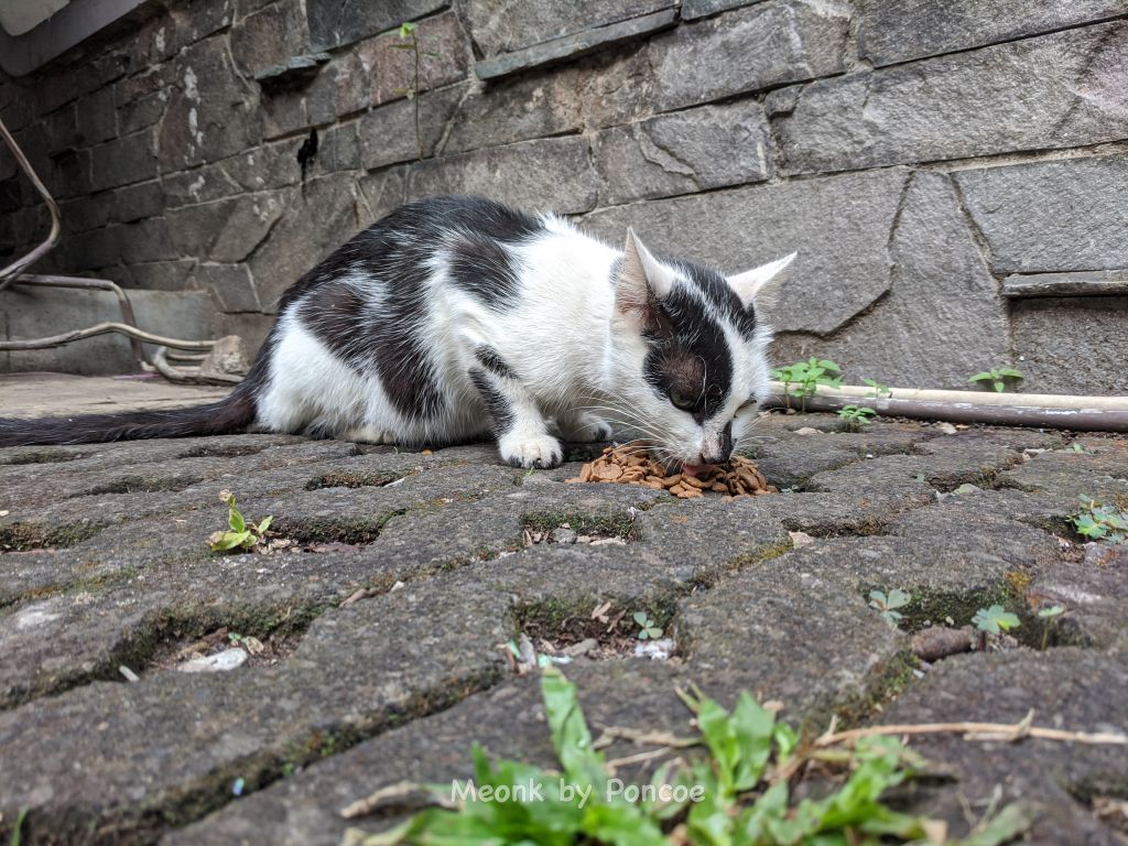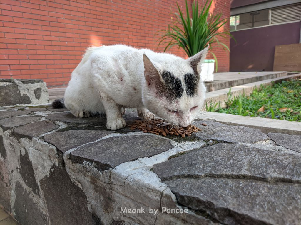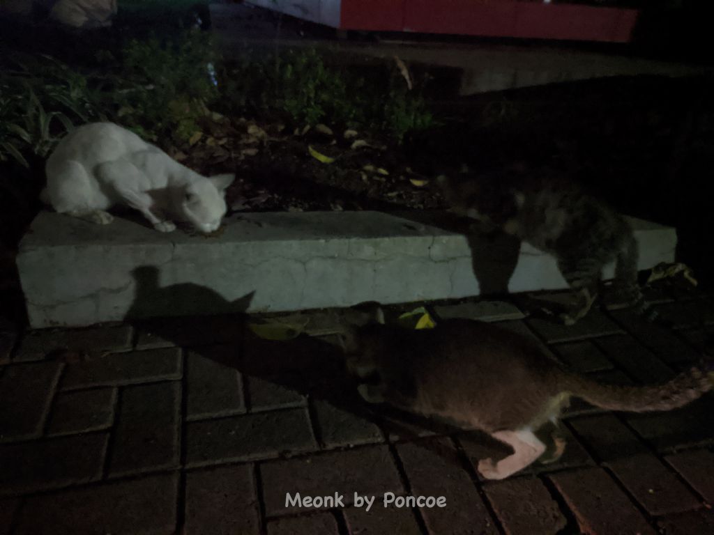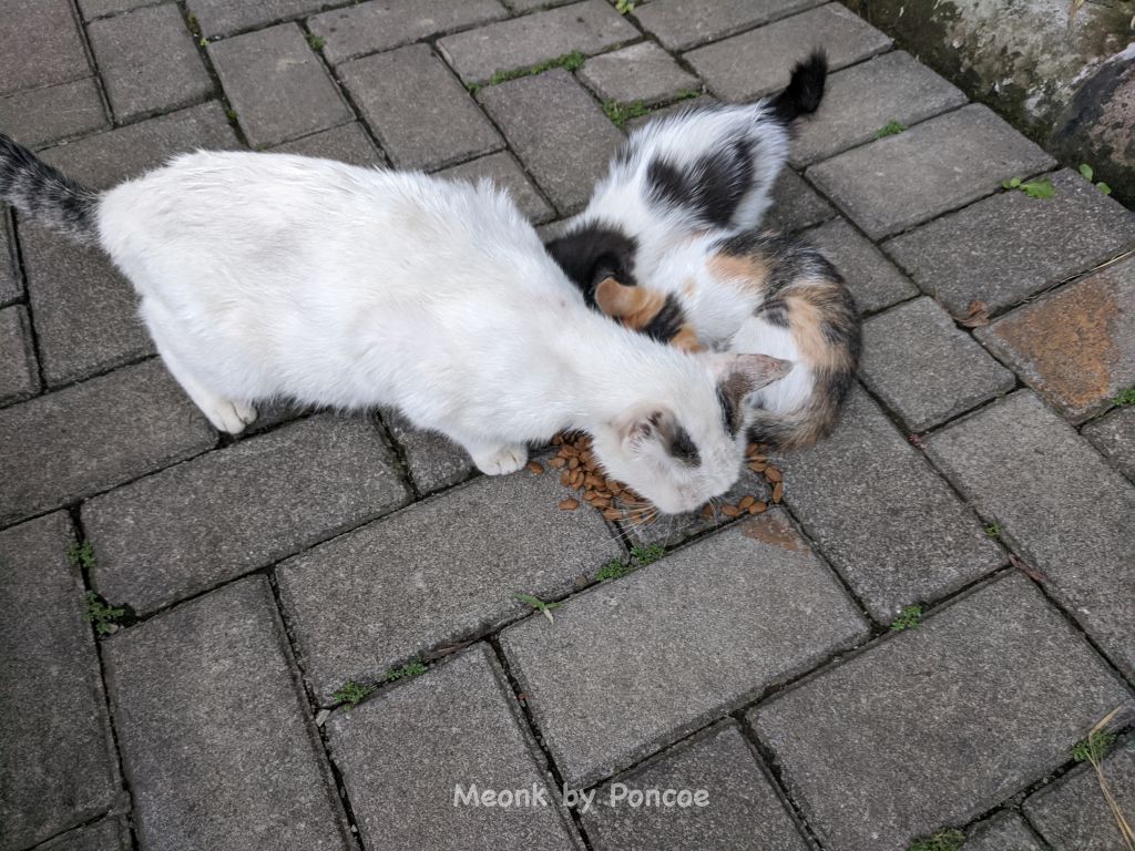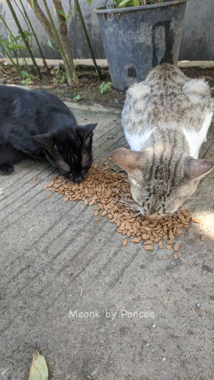 Si Kucing Minggu dan Item Lagi makan Bareng