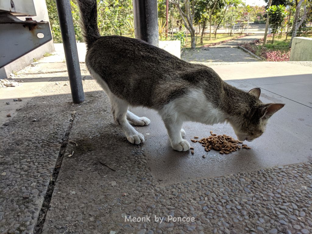 Kucing Putih Abu-Abu lagi Makan Didanau