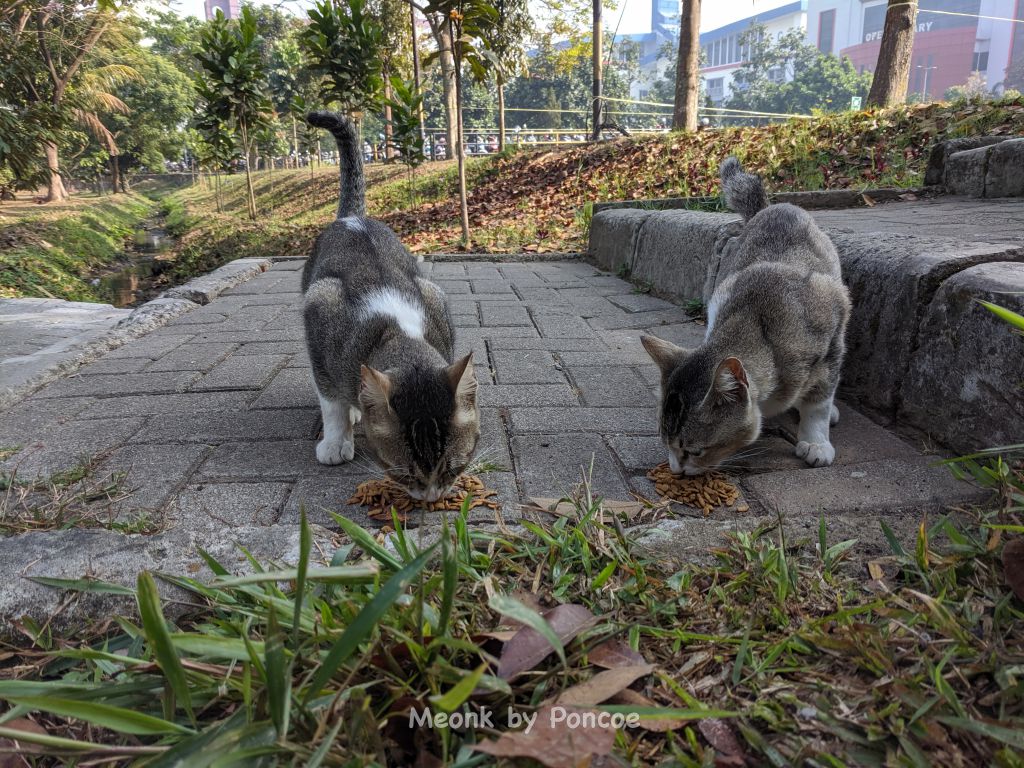 View More Meonk Putih Abu-Abu Lagi MakanKucing Oren Lagi Makan 2