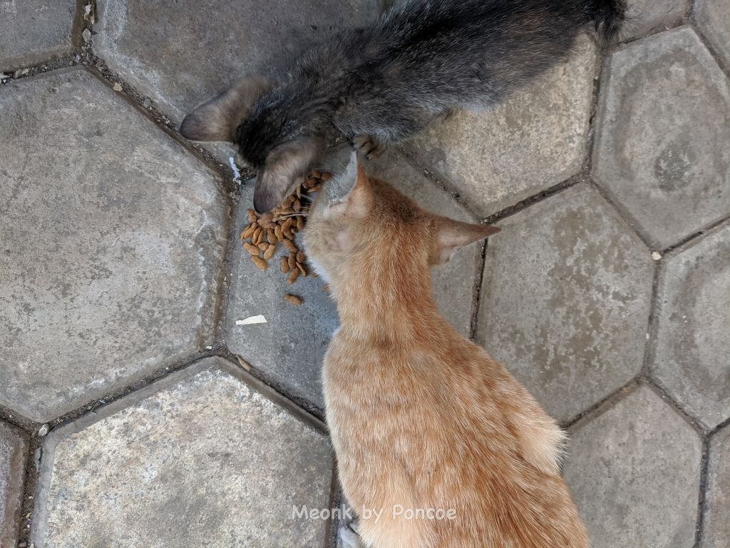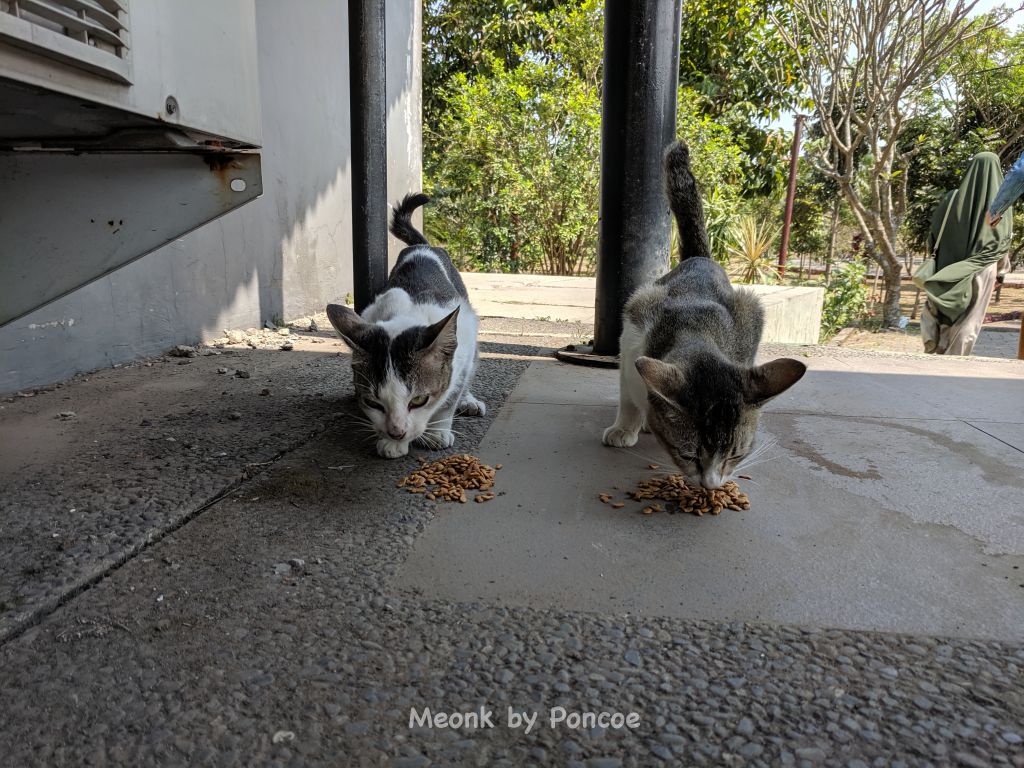 View More Kucing Oren dan Abu Kecil Makan BarengKucing Si Putih Lagi Makan deket gd Teknik Tel-U